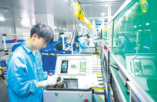 4月17日,武汉东湖高新区东湖综合保税区,员工在武汉合智数字能源技术有限公司产线上组装检测出口充电桩。作为国家级专精特新“小巨人”企业,合智数字能源拥有120余项专利与软件著作权,充电桩产品已经覆盖国内200多个城市,并热销海外50余个国家和地区。