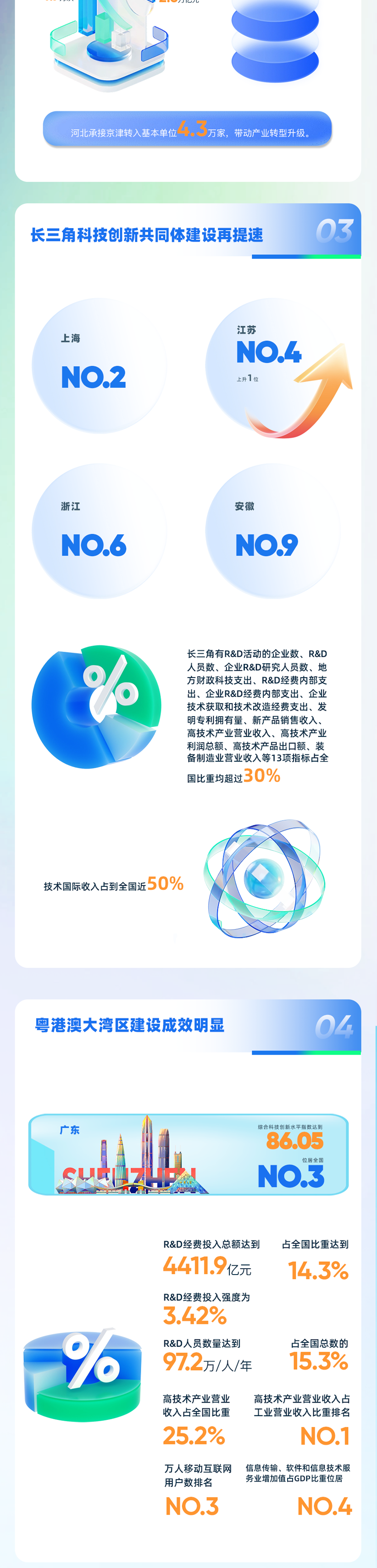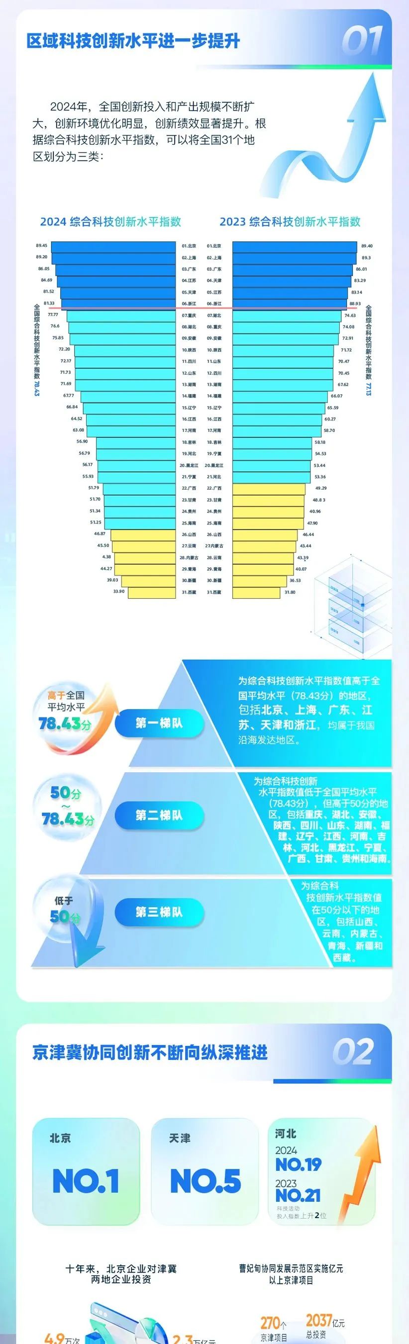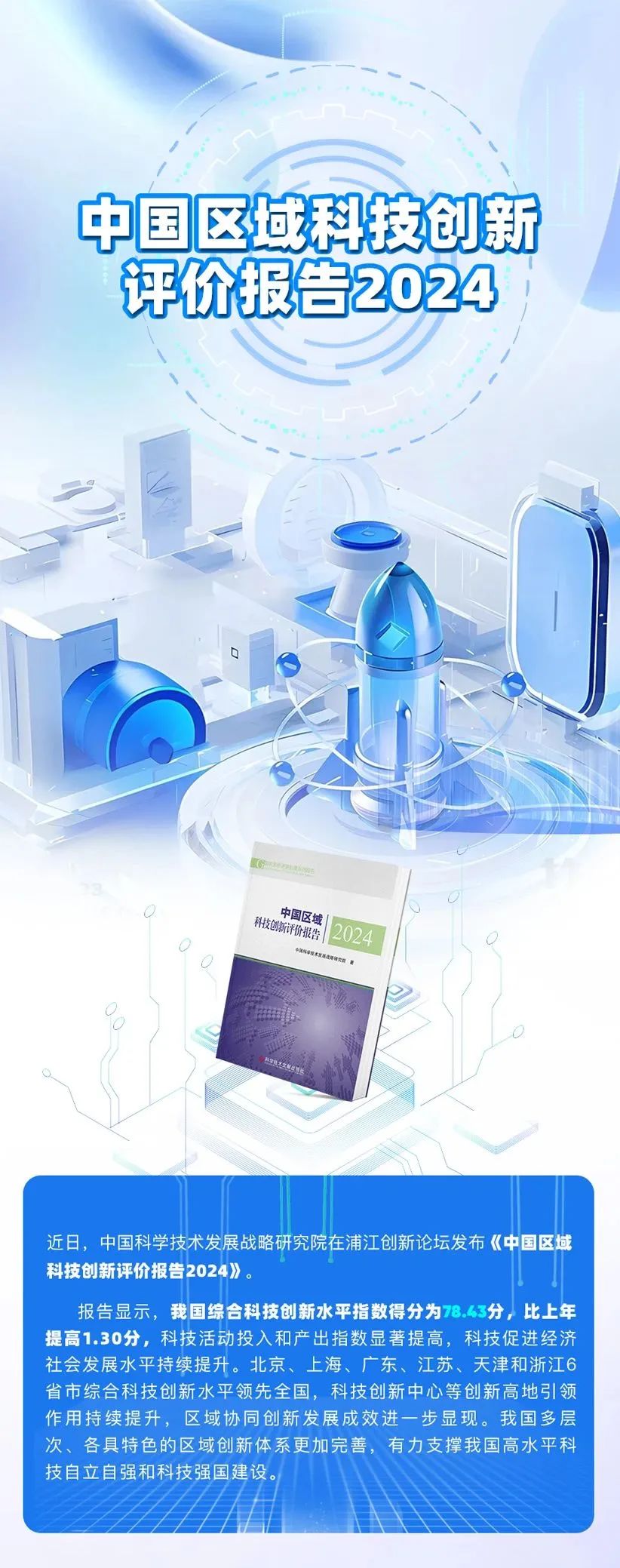 9月8日,中国科学技术发展战略研究院在浦江创新论坛发布《中国区域科技创新评价报告2024》。报告显示,我国综合科技创新水平指数得分为78.43分,比上年提高1.30分,科技活动投入和产出指数显著提高,科技促进经济社会发展水平持续提升。报告显示,湖北综合科技创新水平排名第八,科技活动投入上升1。