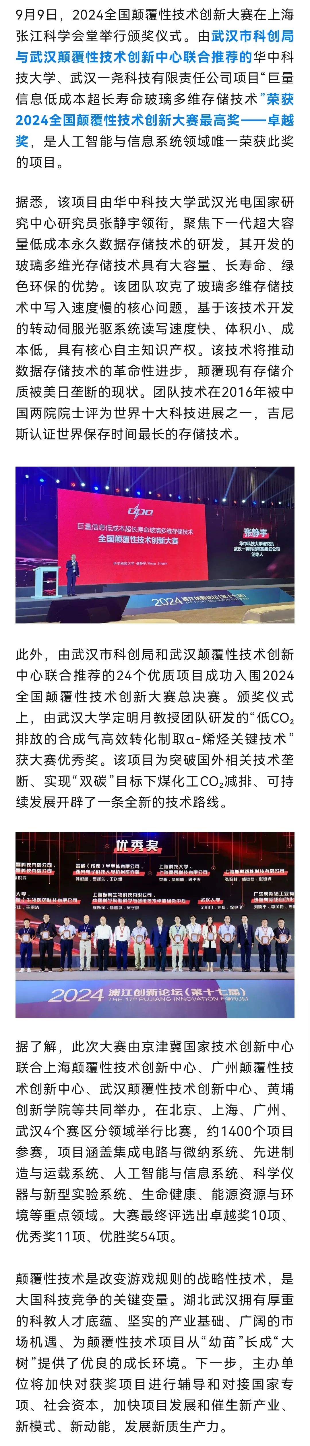 市科创局与武汉颠覆性技术创新中心联合推荐的项目夺得桂冠!2024全国颠覆性技术创新大赛奖项陆续揭晓