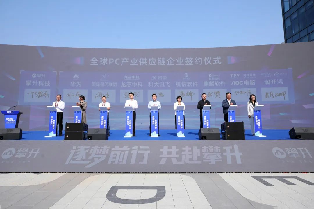 活动现场,省信创工委会副会长单位攀升科技与黄陂区正式签约,政企携手组建PC产业链平台,建设湖北PC产业集聚区,致力于打造以武汉攀升科技园为核心的PC产业链、供应链、创新链、人才链。