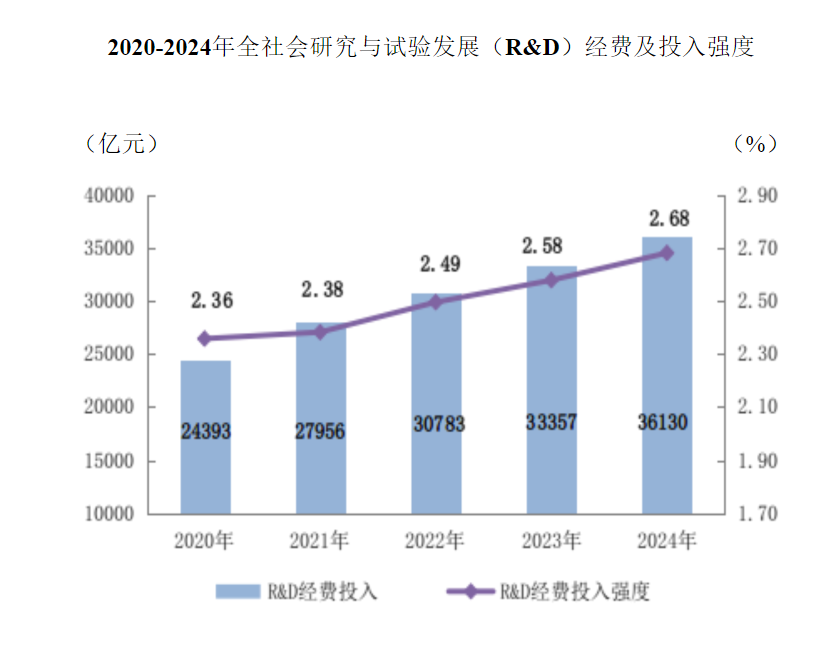 2024年我国研究与试验发展(R&D)经费超过3.6万亿元