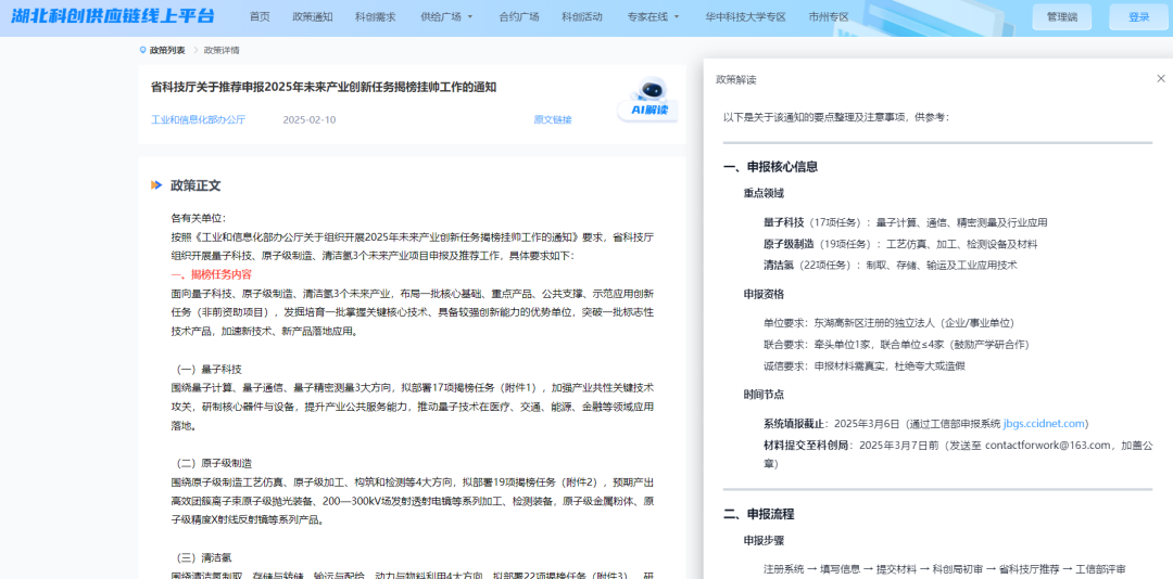 截至2月21日,平台已入驻企业6.6万家,科创需求数4.7万余项,已完成供需匹配1.4万余项。后续,平台将应用DeepSeek开发更多AI智能化应用场景落地,帮助用户更精准地提需求找资源报政策,推动科创资源供需对接更智能更高效。