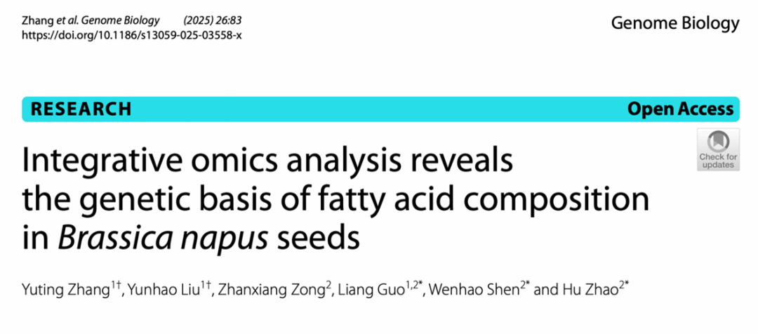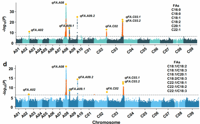华中农业大学团队联合崖州湾国家实验室揭示油菜脂肪酸组成的遗传基础