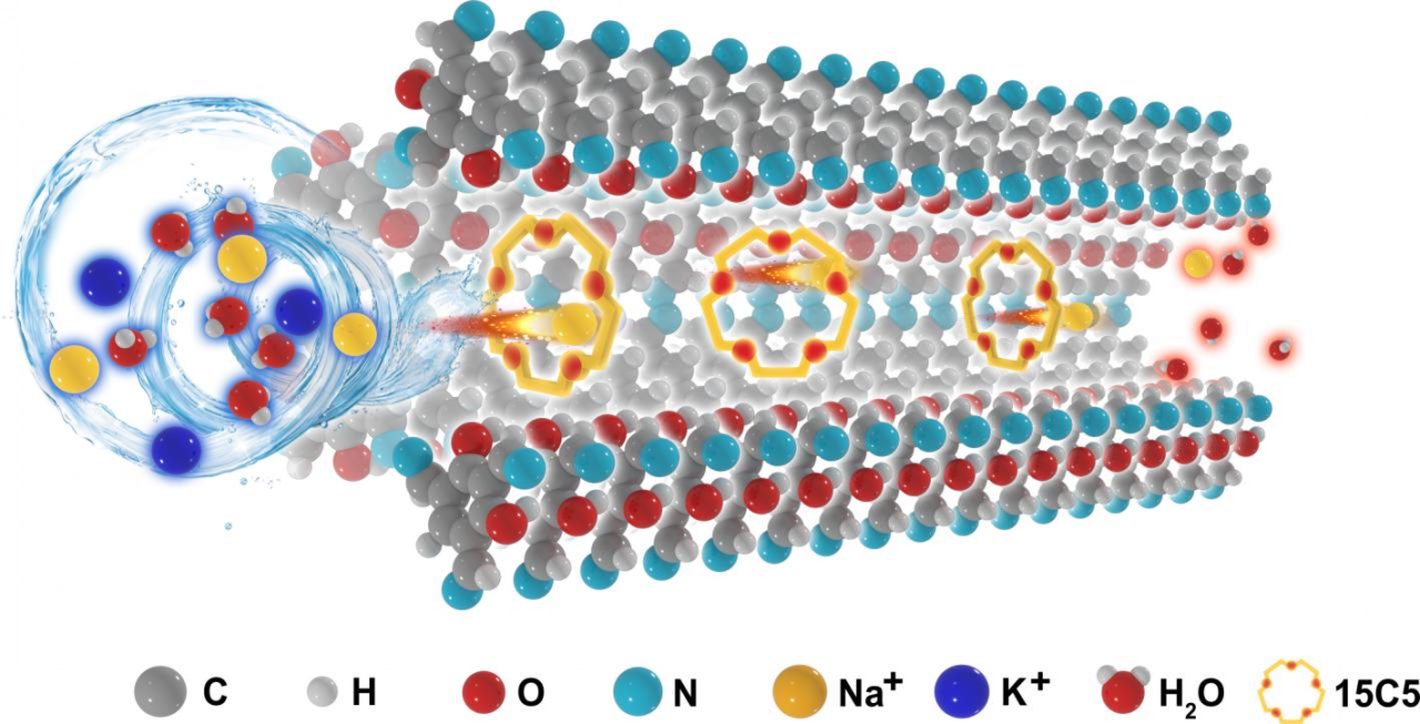 生物钠离子通道以Na⁺对K⁺的高选择性和快速Na⁺传导速率为特征,在几乎所有细胞类型的生物过程中发挥重要作用。这些天然通道通常表现出10–10²的Na⁺/K⁺选择性和超快的钠离子传输速率,用于维持稳态平衡和传递神经信号。近年来,因其在水处理等领域的应用潜力,开发人工生物通道的研究备受关注。尽管已设计多种人工离子通道/膜以模拟生物通道的选择性传输特性,但分离单价阳离子混合物仍面临巨大挑战。