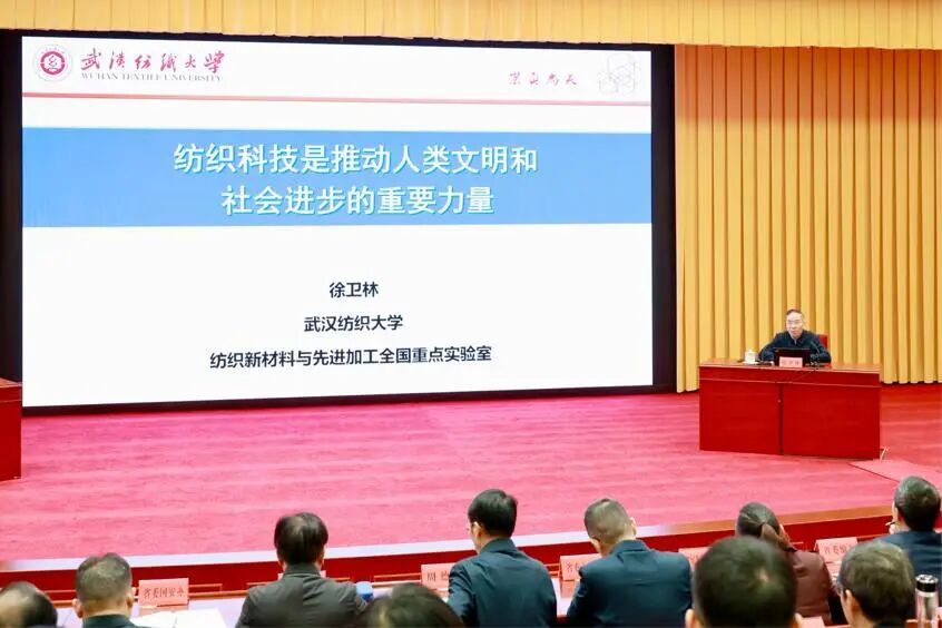 10月21日,中国工程院院士、武汉纺织大学党委书记徐卫林以《纺织科技是推动人类文明和社会进步的重要力量》为题作专题报告。报告中,徐卫林院士从人类文明演进视角切入,系统梳理纺织科技的发展脉络——从远古先民的麻丝织物,到引爆工业革命的纺纱机械革新,再到支撑航天事业的特种纺织材料,深刻阐释“每一次纺织科技突破,都在重塑生产模式、提升人类生活品质”的核心逻辑。