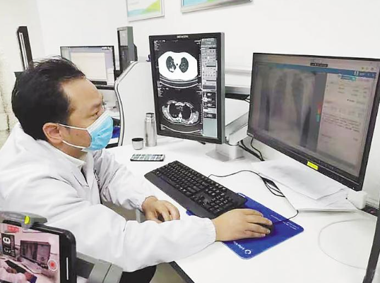 武汉市肺科医院结核病专家进行远程复核检查。 (湖北日报通讯员 张全录 摄)