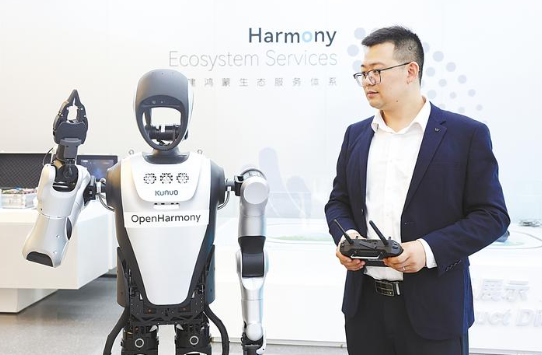 “这台机器人‘管家’正在学习鸿蒙生态里的‘官方语言’。”鸿蒙生态服务(深圳)有限公司总经理、鸿蒙生态创新中心主任杜金彪介绍,“不久的将来,在配备鸿蒙设备的环境中,您只需说‘天黑了,请关灯’,它就能自动调节室内照明;说‘这里需要打扫’,它便会安排扫地机器人工作。”
