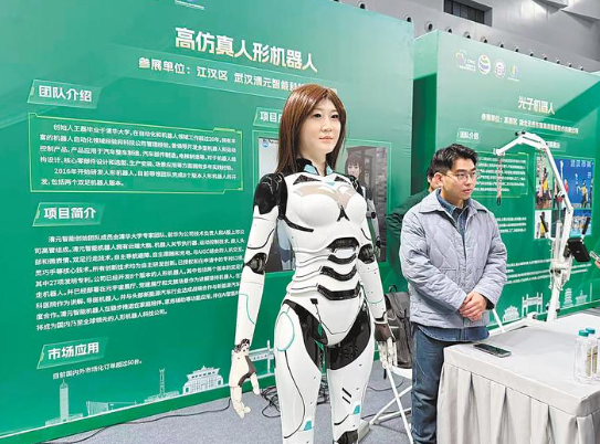 在清元智能科技的展位前,一台拥有细腻微表情、可流畅交互的高仿真人形机器人被学生们层层包围。它不仅能实现智能问答,还能自主导航和避障。据现场负责人介绍,该机器人已迭代至第八代,目前已在元宇宙展厅、牙科医院导诊、新能源汽车合作等场景落地应用。“我们正探索将其应用于话剧演出,让机器人也能演绎出‘真人感’。”这一展望,让科技与人文的融合充满想象空间。