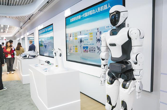 11月5日,武汉产业创新发展研究院,湖北42项关键技术攻关“尖刀”工程成果亮刃出鞘、集中展示。图为展出的“荆楚”系列人形机器人。(湖北日报全媒记者 魏铼 摄)