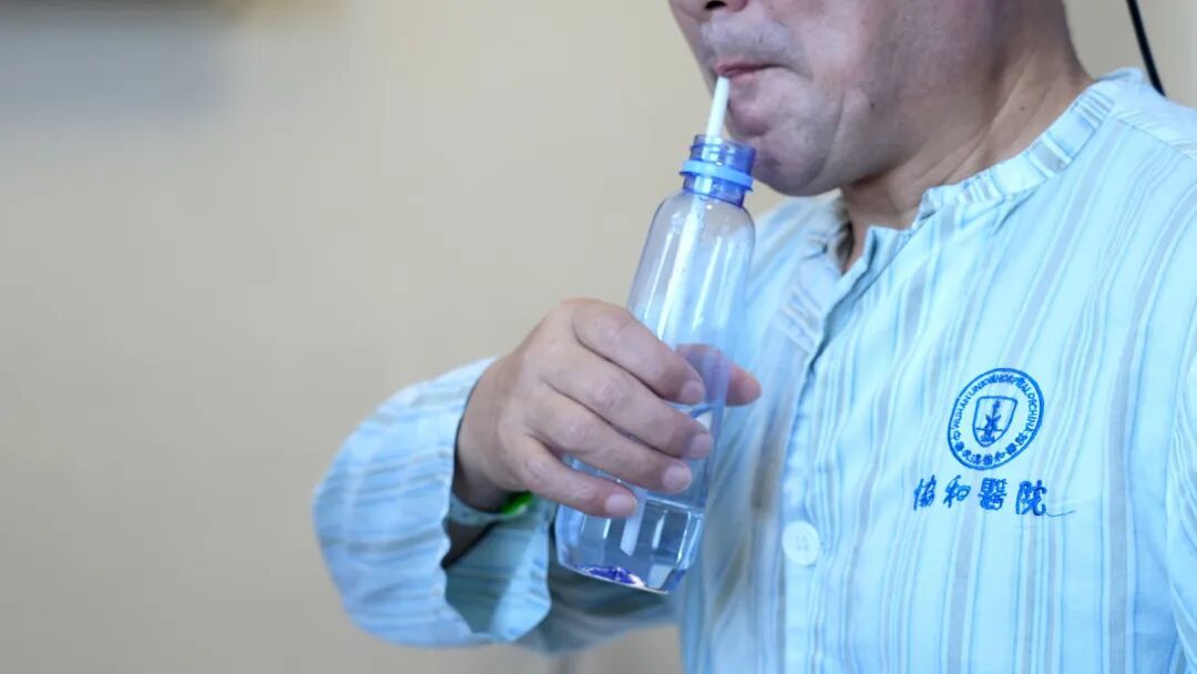 一个多月来,医护人员指导刘先生进行系统康复训练,他的右侧肢体肌力显著增强,在没有器械辅助的情况下,手臂能够轻松上抬,原本无法活动的大拇指功能明显改善,并能完成抓握水瓶、将瓶口对准嘴巴喝水的连续动作。