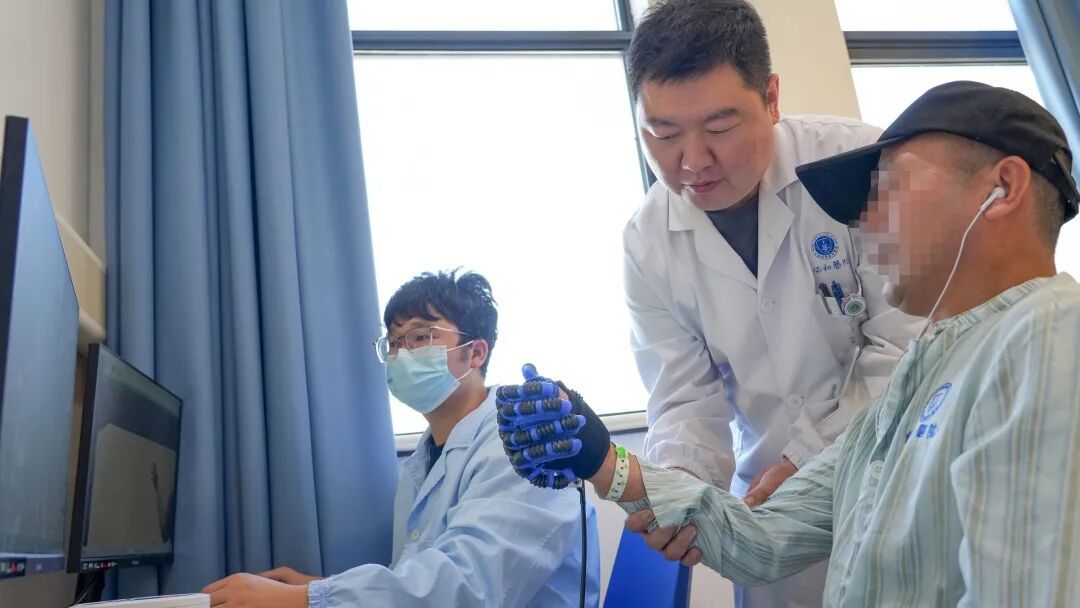 术后,当患者用“意念”驱动手指伸展或抓握时,系统立即控制气动手套完成相应动作,进而促进部分神经恢复,加速肢体功能重建。