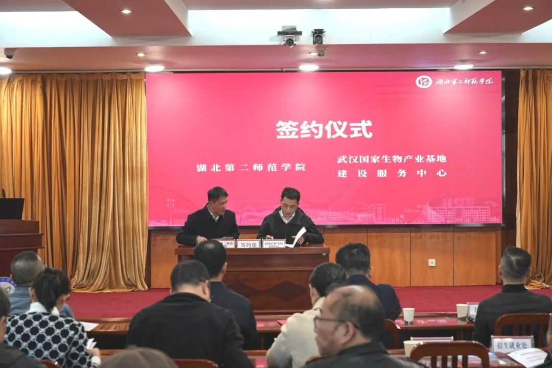 活动现场,武汉国家生物产业基地建设服务中心与湖北第二师范学院签署战略合作框架协议,双方将聚焦生命健康、生物医药等重点产业领域深化合作,推动高校科研成果在光谷等核心区域转化落地,为相关产业发展注入新的科技动能。