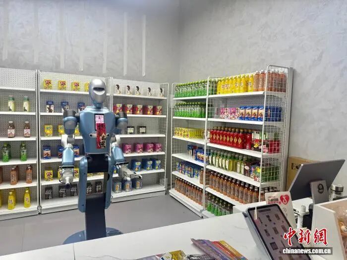 2月27日,武汉光谷人形机器人7S店的一台机器人正在“经营”小卖部。中新社记者 武一力 摄