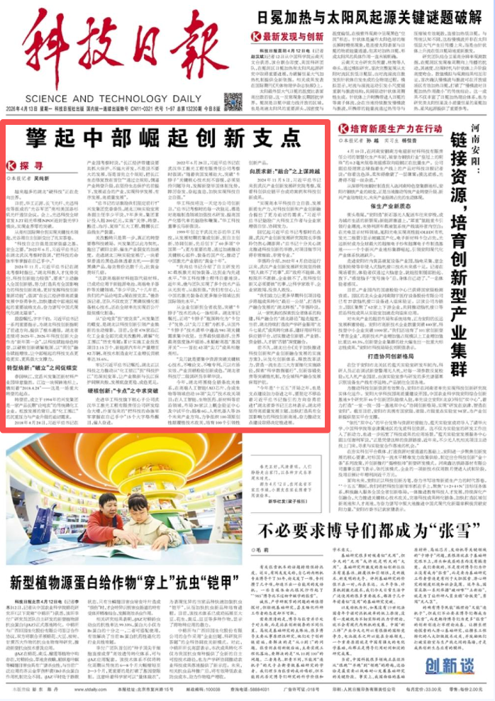 《科技日报》头版头条聚焦湖北:擎起中部崛起创新支点