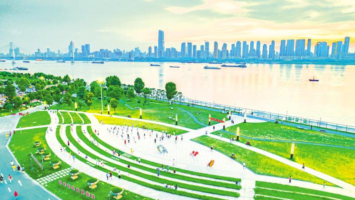 长江武汉段水清岸美,船舶穿梭往来。(湖北日报全媒记者 薛婷 摄)