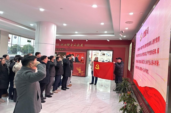 全体党员重温入党誓词,参观院士风采展,感悟科技报国精神。专题学习环节中,双方党支部书记分别领学习近平总书记新年贺词、省科技创新大会及全市“五个中心”建设工作推进会精神,结合学习贯彻党的二十届四中全会精神,并运用警示教育案例开展学习,强调要干字当头、以干促上,锤炼过硬作风,切实把思想和行动统一到中央及省委、市委决策部署上来。