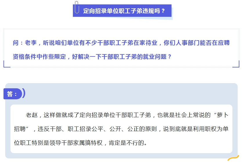 党规党纪你问我答 | 定向招录单位职工子弟违规吗?