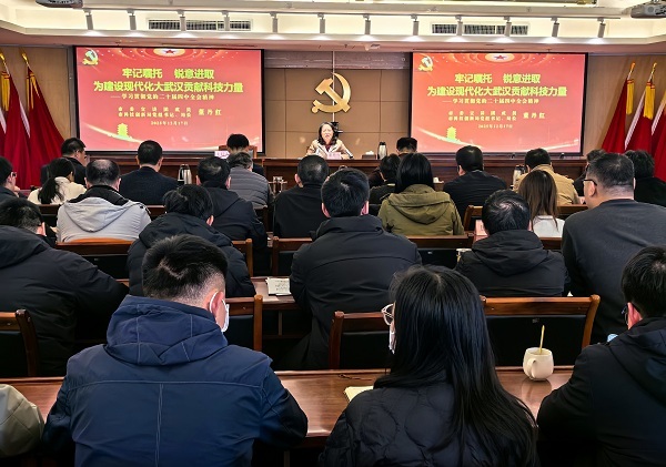 报告会上,董丹红以《牢记嘱托 锐意进取 为建设现代化大武汉贡献科技力量——学习贯彻党的二十届四中全会精神》为题,从准确把握“十五五”时期在基本实现社会主义现代化进程中的重要地位、深刻领会“十五五”时期经济社会发展的指导方针和主要目标、全面理解“十五五”时期经济社会发展的战略任务和重大举措等方面展开,对全会精神进行了全面宣讲和系统阐释。
