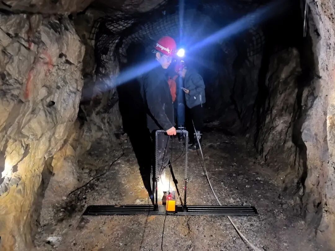 工作人员在矿洞里使用大深度地质探测雷达。